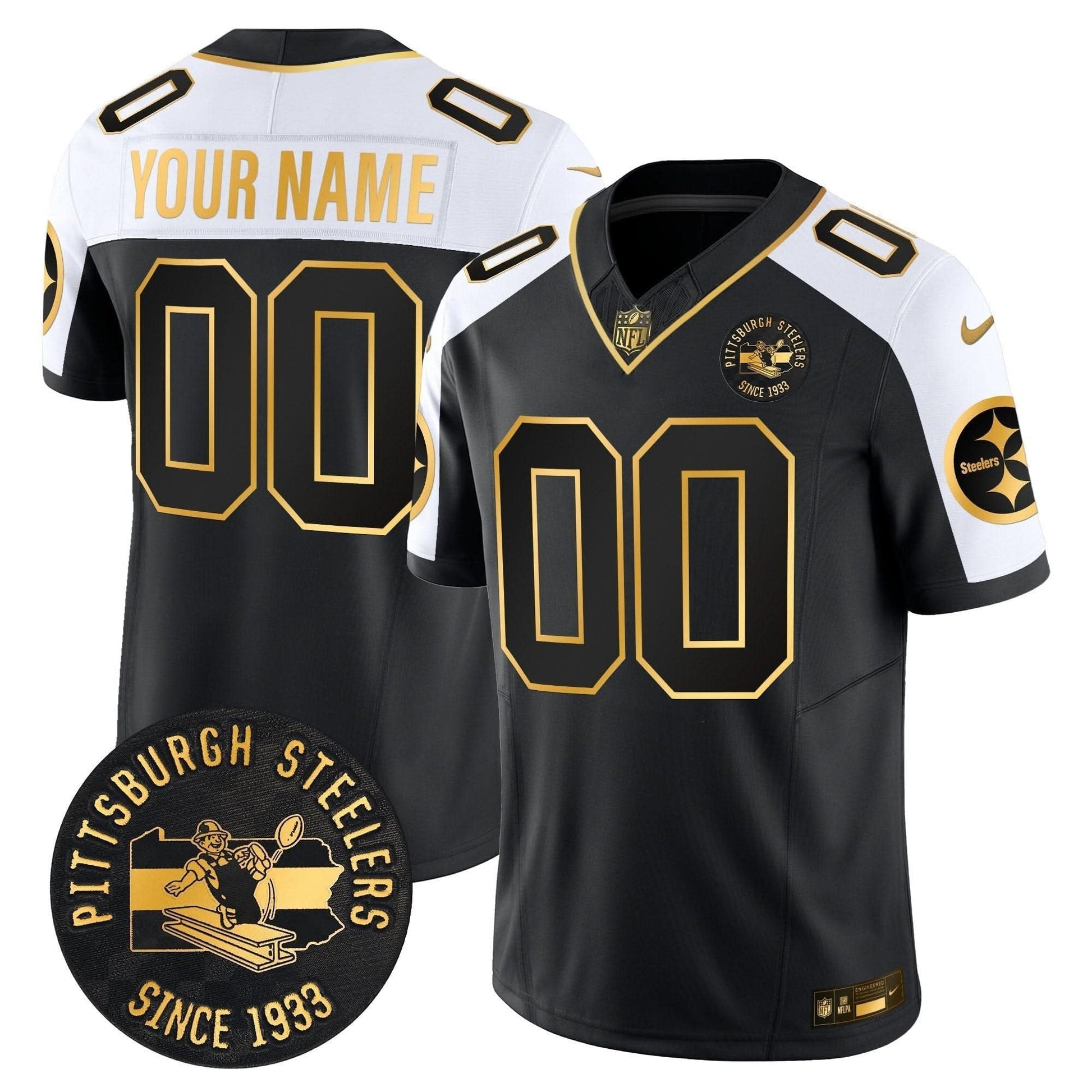 Pittsburgh Steelers Throwback 1933 Patch Gold Vapor Limited Custom Jersey - All Stitched